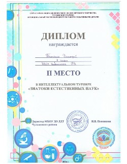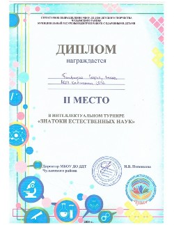 27 января 2026 года на базе МБОУ ДО ДДТ для учащихся 7, 8 классов проходил интеллектуальный турнир « Знатоки естественных наук». Команда нашей школы в составе Ботвинко С., Инкиной О., Майбуровой Е., Макаровой В., Насоновой В., Титенко Д. заняла 2 место и была награждена дипломами.