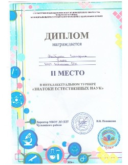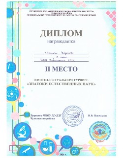 28 мая 2025 года обучающаяся 9 класса Краюхина Мария и ее наставник Афанасьева Н.В. приняли участие в фестивале талантов «Юные дарования Чулымского района – 2025». Краюхина М. (9 кл.) получила диплом лауреата за высокие достижения в интеллектуальной проектно-исследовательской, инженерно-технической деятельности в номинации «Интеллектуальный потенциал», Афанасьева Н.В. – благодарность за профессиональное мастерство и достигнутые успехи в обучении и воспитании подрастающего поколения Чулымского района.